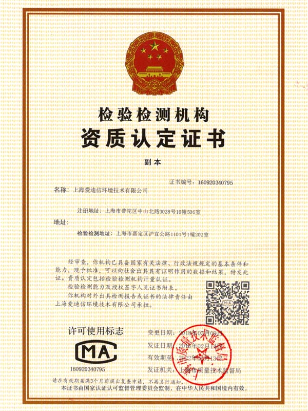 CMA 計(jì)量認(rèn)證資質(zhì)證書(shū)
